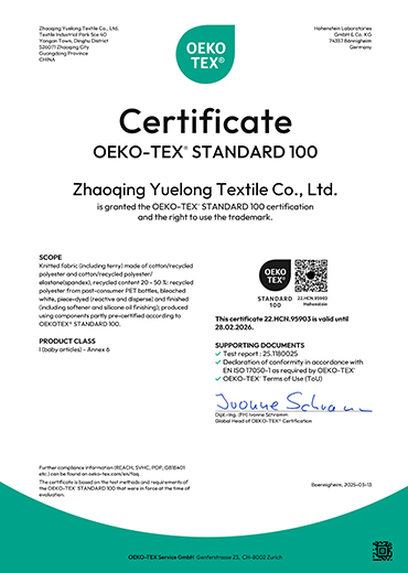 STANDARD 100 by OEKO-TEX® is one of the world’s best-known labels for textiles tested for harmful substances. It stands for customer confidence and high product safety.