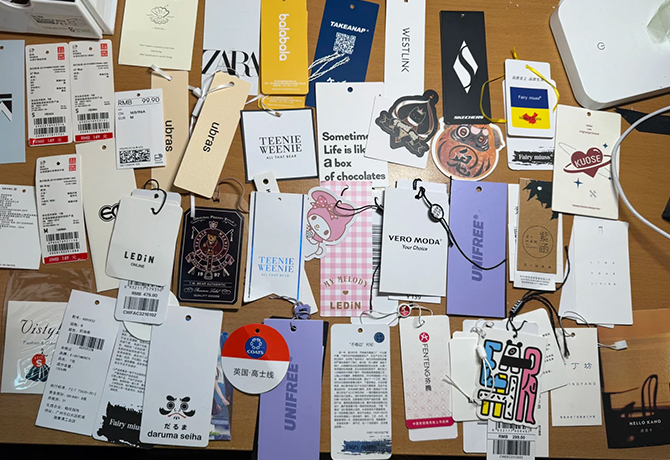 Our materials include recycled kraft paper, FSC-certified paper, cotton-linen fabric tags, wooden and metal tags, as well as recycled PET plastic — offering diverse textures to suit minimal, artistic, or eco-luxury fashion lines.