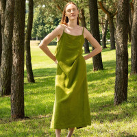 Custom Minimalist Green Sling Linen Maxi Dress Manufacturers | Linenwind