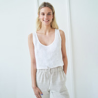 Beige linen crop top. Lightweight, breathable, and perfect for relaxed summer days or effortless everyday styling. Retail-ready to ship.