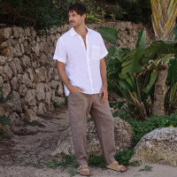 Men White Linen Short Sleeve Shirt | Breathable Summer Casual Shirt